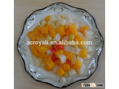 | Style: | Canned | | Type: | Cherry, Peach, Pear, Pineapple, Seedless Grape | | Preservation Process: | Syrup | | Max. Moisture (%): | 35 | | Certification: | BRC, HACCP, HALAL, ISO, KOSHER | | Weight (kg): | 0.425 | | Shelf Life: | 3years | | Place of Origin: | Shandong China (Mainland) | | Brand Name: | ACROYALI or OEM | | Model Number: | 425ml/850ml/2650ml/3100ml | | Cultivation Type: | Common | | Ingredients: | peach, pear,pineapple,grape,cherry | Canned Fruit Cocktail
